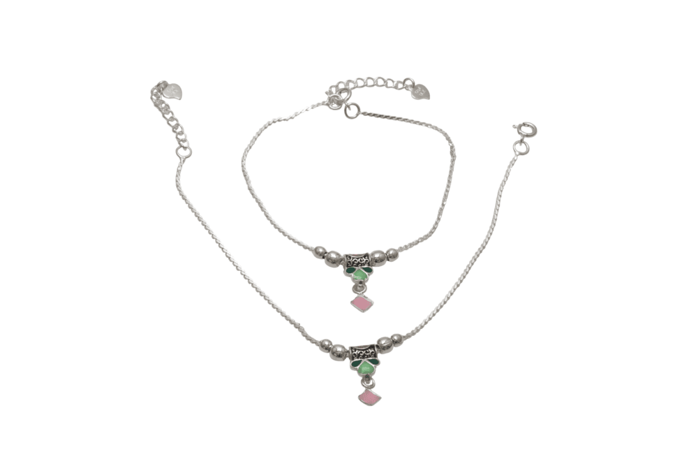🌸 Charming Floral Design – Features delicate pink and green enamel flower charms, perfect for baby girls.