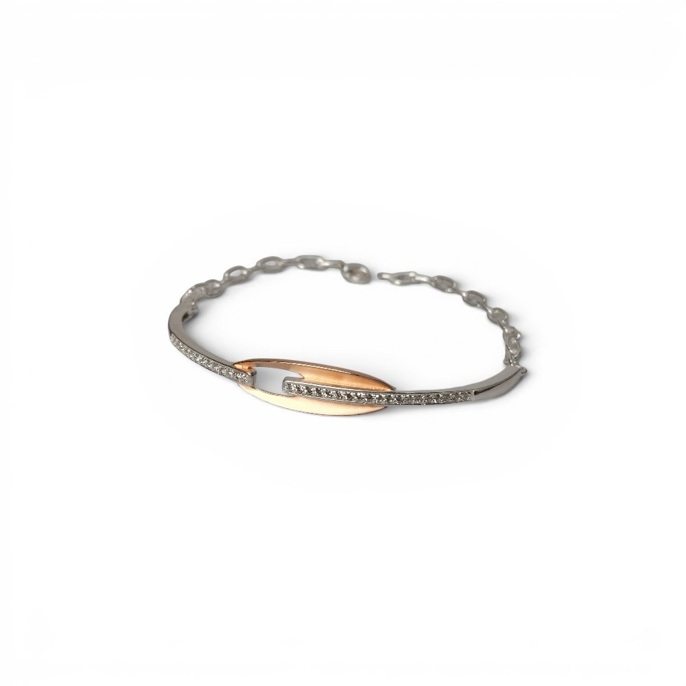 Leaf Kada — Two-Tone CZ Silver Bracelet for Women